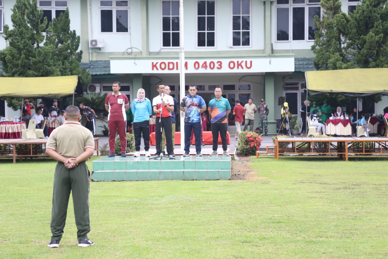 BATURAJA OKU – PLH Bupati OKU H. Teddy Meilwansyah Menghadiri Acara Olah Raga Bersama Forkopimda OKU Guna Membangun Sinergitas TNI-Polri dan Pemerintah Kabupaten OKU, Bertempat Laparangan Makodim 0403 OKU dan Lapangan Tembak Pistol Darmawangsa 0403 OKU. (Sabtu, 28/05/2022).