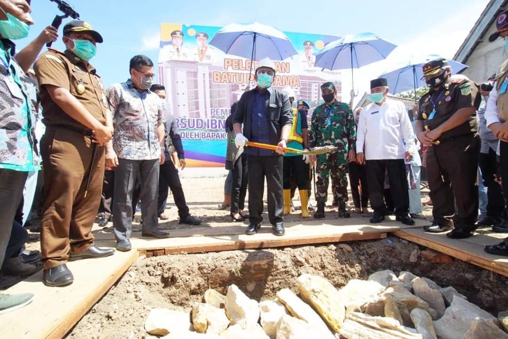 BATURAJA OKU – Setelah lama di nantikan gedung baru pembangunan Rumah Sakit Umum Daerah (RSUD) Ibnu Sutowo Baturaja akhirnya kini mulai didirikan. Pembangunan gedung yang direncanakan lima lantai itu di tandai dengan peletakan batu pertama oleh Gubernur Sumsel H. Herman Deru Melakukan Peletakan Batu Pertama Pembangunan Gedung RSUD Ibnu Sutowo Baturaja, Sabtu (06/06/2020).