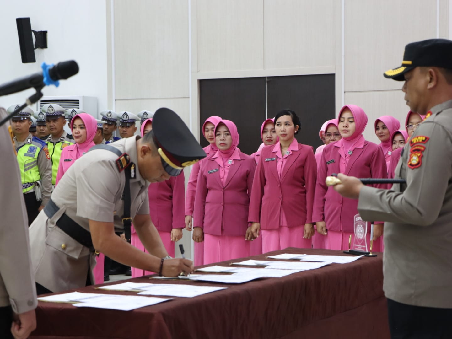 Dalam kegiatan serah terima jabatan ini dihadiri oleh Waka Polres OKU Kompol Farida Aprillah, S.H., para Kabag, Kasat, Kasi, perwira Polres OKU, Personel Polres OKU, Ketua Bhayangkari Cabang Oku Ny. Indi Arif Harsono bersama pengurus bhayangkari.