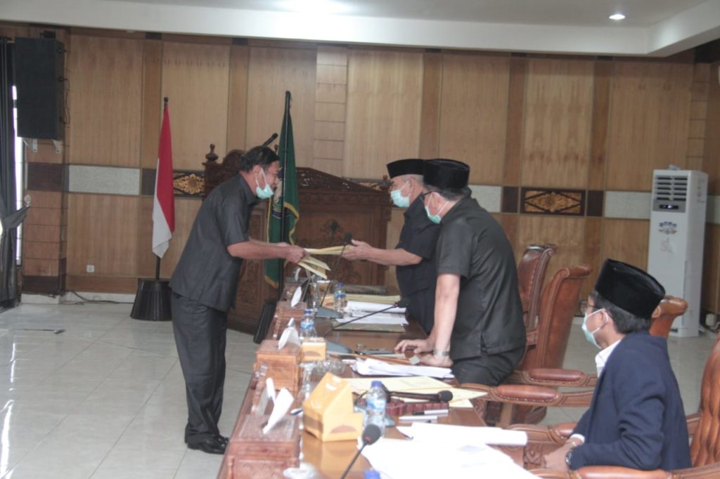 Bupati OKU Drs. H. Kuryana Azis Menghadiri Rapat Paripurna Ke-X DPRD Kabupaten OKU Masa Persidangan Ke-3 Tahun Sidang 2020. Dengan Agenda Rapat Pandangan Umum Anggota DPRD Kabupaten OKU Terhadap Raperda Pertanggung Jawaban Pelaksanaan APBD (RPPA) Kabupaten OKU Tahun Anggaran 2019 Bertempat di Ruang Rapat Paripurna DPRD OKU (Rabu, 24/06/2020).