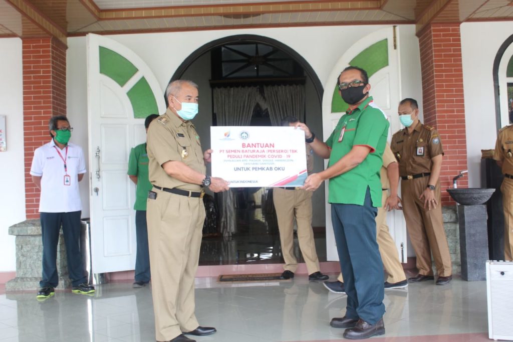 Pada kesempatan ini management PT Semen Baturaja melalui Departemen CSR menyerahkan bantuan untuk Pemerintah Kab OKU yaitu berupa Baju Hazmat 100Pcs, Masker kesehatan 50 kotak, Kaca mata google 100Pcs, Handscoon 10.000 Pasang, Handsanitizer 100 liter dan Masker bahan american drill bisa dicuci ulang 8000 Pcs dari Baitul Mal SMBR, Masker kain 1000 Pcs dari Serikat Karyawan Semen Baturaja.