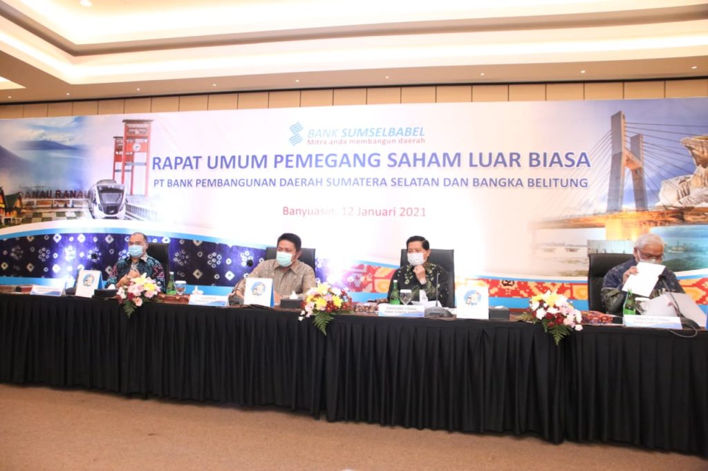 Bank Sumsel Babel menggelar rapat umum pemegang saham luar biasa (RUPS LB), pada Selasa (12/1/2021). RUPS LB tersebut membahas berakhirnya masa jabatan dua direksi, yakni Direktur Pemasaran Antonius Prabowo Argo dan Direktur Umum Samiluddin.