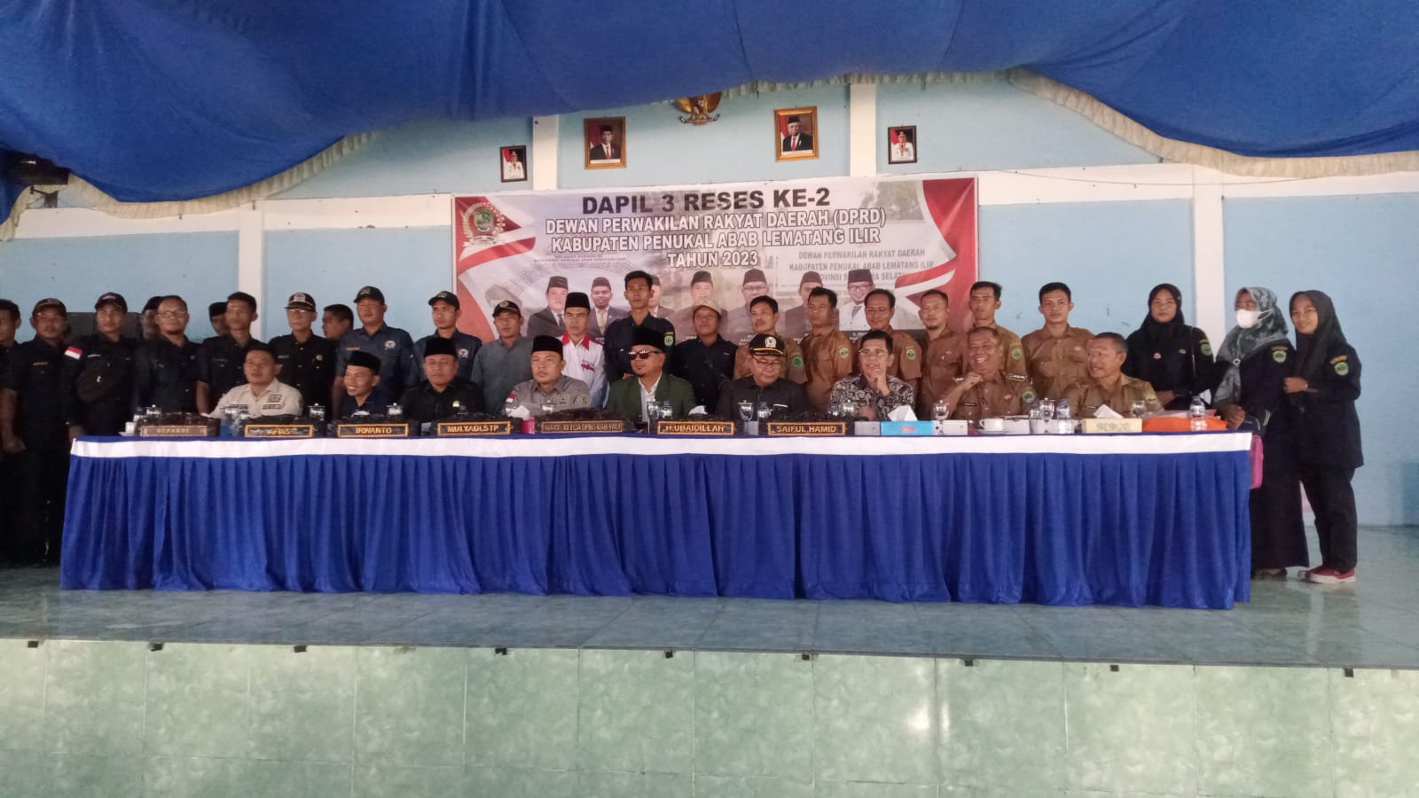 Reses DPRD kabupaten PALI yang di hadiri M,Budihoiru S HI praksi partai Demokrat selaku ketua reses H.ubaidilah SH praksi partai PAN, Mulyadi STP praksi partai PDIP, Saipul Hamid S,sos praksi partai Perindo, Irwanto SH praksi partai Golkar, Afias A, fr praksi partai PKS, Supardi praksi partai Nasdem,Camat Abab Razullik camat Tanah Abang yang diwakilkan sek cam Darmawan SH, kepala desa Betung Suparman SE,kepala desa Betung Barat Rozali A Md, kepala desa Betung selatan H.Darlin.kepala desa karang agung Ali wardana, beserta BPD dan perangkat desa, dan ada beberapa perwakilan dari toko masyarakat serta undangan lain nya
