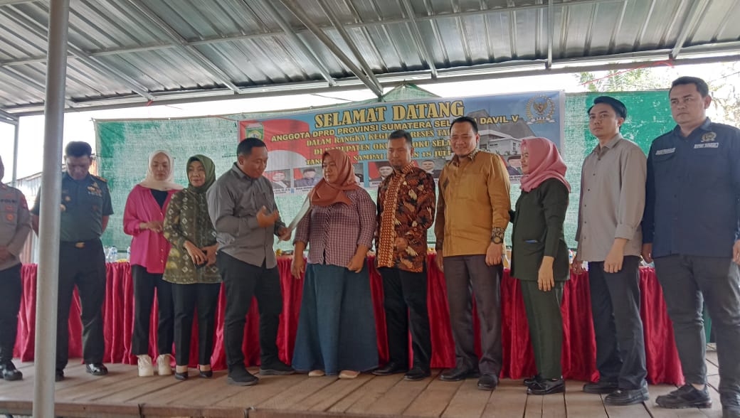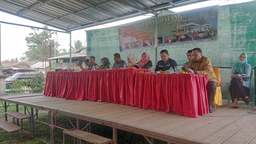 BATURAJA OKU – Reses anggota DPRD Provinsi Sumatera Selatan daerah pemilihan V Kabupaten OKU dan OKU Selatan, dihadiri lengkap tujuh anggota dewan, di koordinator oleh anggota DPRD Provinsi Sumsel Hj Tina Malinda SE MSi dari Partai PDI Perjuangan , Iwan Hermawan ST dari Partai Hanura, Hj Susilawati SH partai Gerindra, Andi Dinaldie SE Partai Golkar, Heru Prayogo SH Partai Golkar, Yenny Elita Spd MM, Fathan Qoridi ST dari Partai PKB.