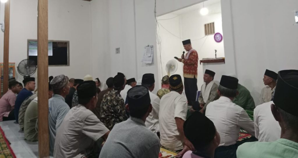 PALI, Gema Publik- Drs.H. Soemarjono mewakili Bupati PALI melakukan safari Ramadhan di Desa Beruge Darat Kecamatan Talang Ubi, di masjid Baitul Arafah Desa Beruge Darat Kecamatan Talang Ubi, Kabupaten Penukal Abab Lematang Ilir( PALI), Jum’at (15/03/2024.)